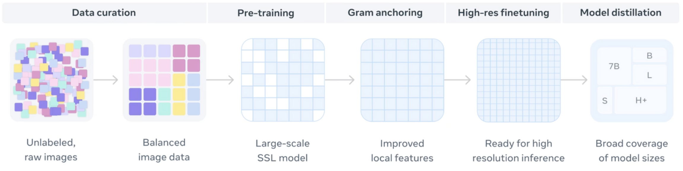 - 이전 모델인 DINOv2의 1.1B 파라미터에서 7B으로 스케일업