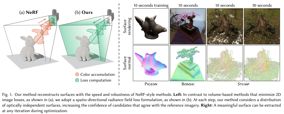 그래서 볼륨 기반 방법의 장점을 유지하면서 표면을 최적화하는 간단하고 직접적인 접근 방식을 제안합니다. 해당 논문의 핵심은 5D Radiance Field Loss 입니다. |