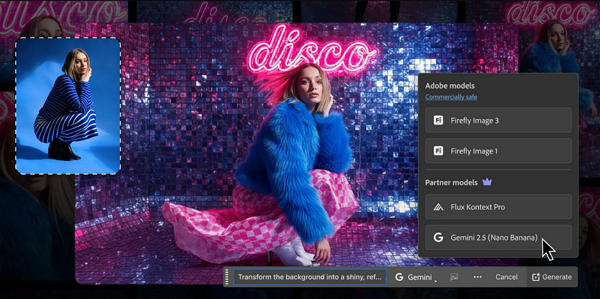 어도비 포토샵에 생성형 인공지능 기능이 새롭게 추가될 예정입니다. 포토샵은 구글의 AI 이미지 편집 모델 제미나이 2.5 플래시 이미지(Gemini 2.5 Flash Image, 일명 나노 바나나)와 블랙 포레스트 랩스의 FLUX.1 콘텍스트 프로(FLUX.1 Kontext Pro)를 지원한다고 밝혔습니다. 나노 바나나는 흑백 이미지에 색을 입히거나 인물의 의상을 변경하는 등 자연어 명령 기반의 편집이 가능하며, FLUX.1은 경쟁 모델보다 3배 빠른 성능을 내세우고 있습니다. 두 모델은 현재 포토샵 베타 버전에서 테스트 중이며, 정식 버전 적용 가능성도 높은 것으로 알려졌습니다. [더보기]